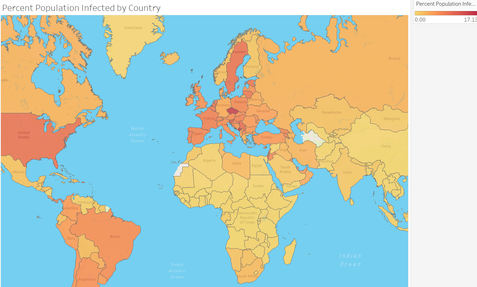 In this project I explore data about worldwide Covid cases and visualize the data in Tableau.